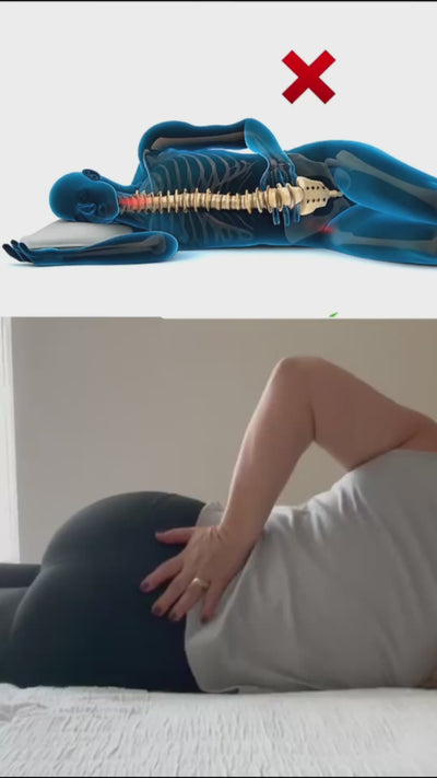 Grâce au coussin orthopédique placé entre les jambes, les genoux restent alignés, le bassin est stabilisé et la colonne retrouve une position plus naturelle pendant le sommeil.